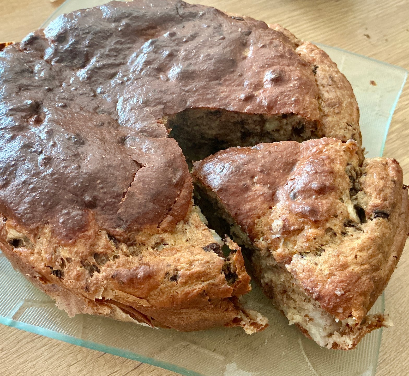 - Vous mixez le tout sans les pépites de chocolat que vous rajoutez à la fin , répartissez dans un moule et enfournez durant 20 à 25 minutes à 180°C.