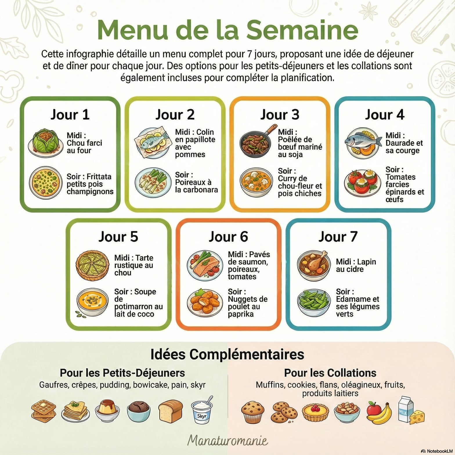 Voici un nouveau menu pour une semaine , variant les protéines.