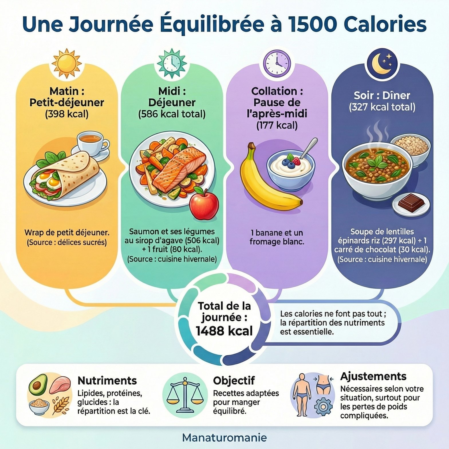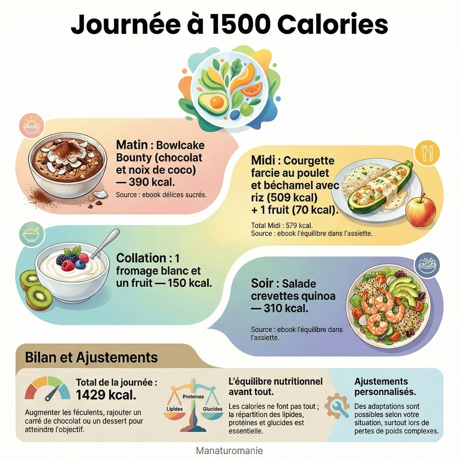 2 idées de journées à 1500 calories, basées sur mes ebooks.