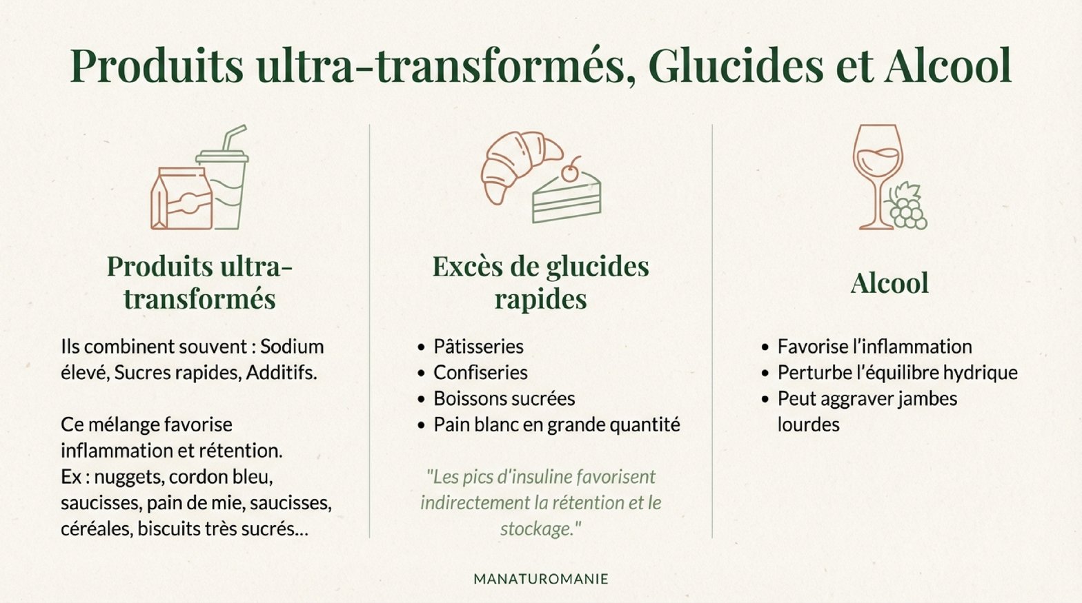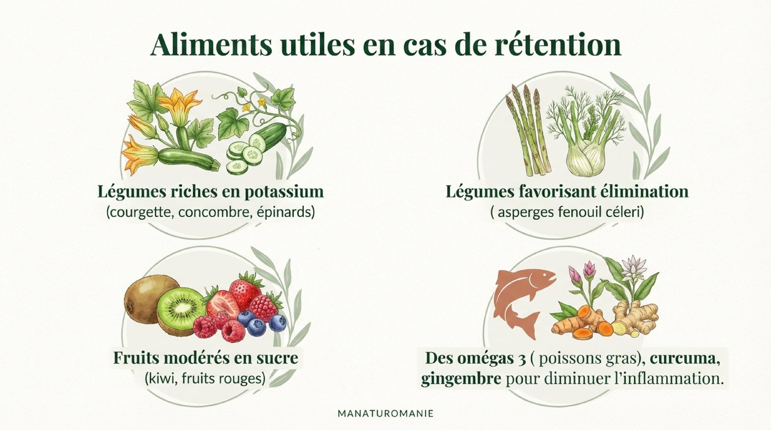 Je vous laisse donc lire quels aliments éviter en cas de rétention et dans une prochaine publication je ferai les plantes permettant de vous soulager.
