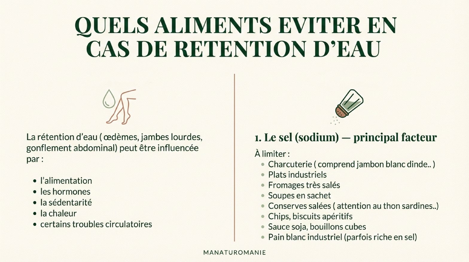 QUELS ALIMENTS EVITER EN CAS DE RETENTION D'EAU