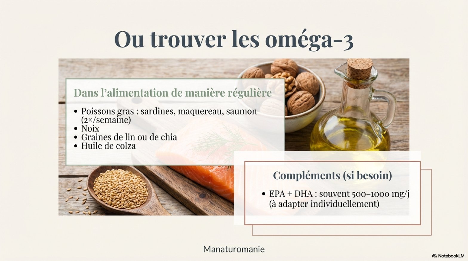 huile, poissons gras ils sont importants et on en mange souvent pas assez.