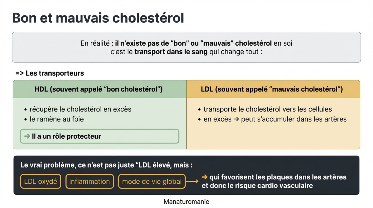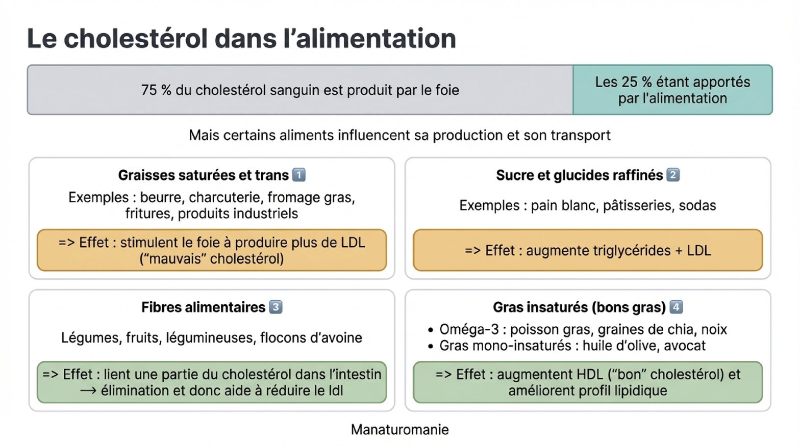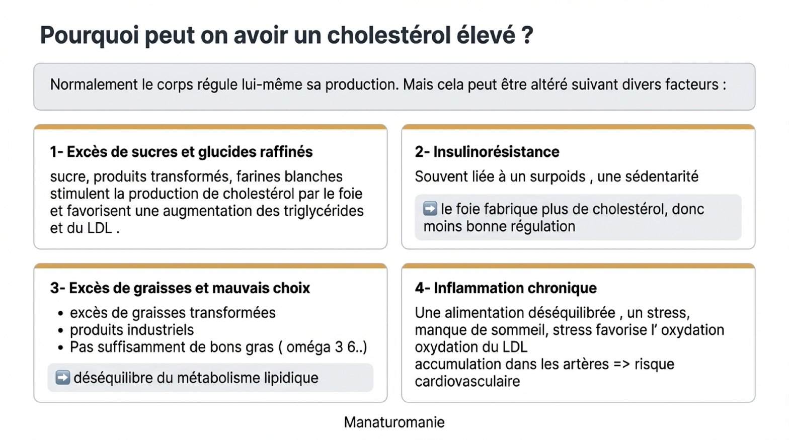 Le cholestérol c'est plus complexe que ça, il y a différentes causes possibles et tout n'est pas que une histoire de gras niveau alimentaire.